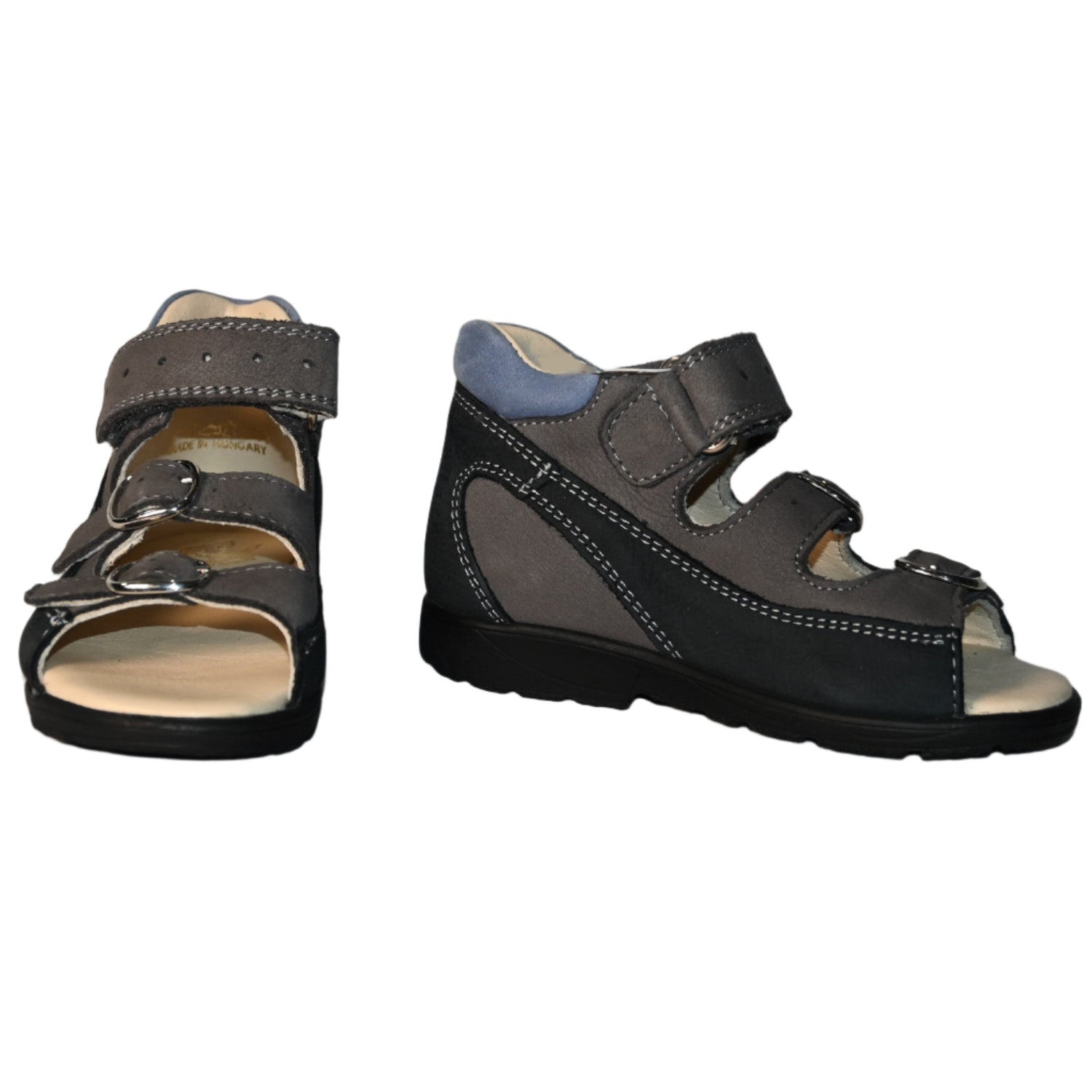 Support your child’s healthy foot development with these Szamos orthopedic sandals, expertly handcrafted in Hungary for breathable comfort, durability, and style. Made from 100% genuine cow nubuck leather inside and out, they provide long-lasting quality while keeping little feet cool and comfortable throughout the day. The corrective orthopedic sole is specially designed for children with flat feet, over-pronation, or ankles that roll inward. It features a 4.5 mm built-in heel lift that gently tilts the heel outward to promote proper alignment, encourage natural arch formation, stabilize the ankle, arch support, and improve posture and balance. This proven type of support — widely known in Europe as “supinated” footwear — delivers real orthopedic benefits while remaining comfortable for everyday wear. A reinforced heel counter ensures ankle stability and maintains the correct heel axis, while the open forefoot design allows natural movement. The sturdy toe protection adds durability during active play, and the flexible rubber sole supports a natural walking motion with reliable traction on different surfaces. With three adjustable straps — one hook-and-loop fastener and two buckles — children enjoy a secure, customizable fit that makes the sandals easy to wear from morning to evening. Perfect for school, playtime, or family outings, these Szamos sandals balance European craftsmanship with supportive design. They provide peace of mind for parents and everyday comfort for kids — more than just shoes, they are a thoughtful investment in healthy growth and lasting quality.