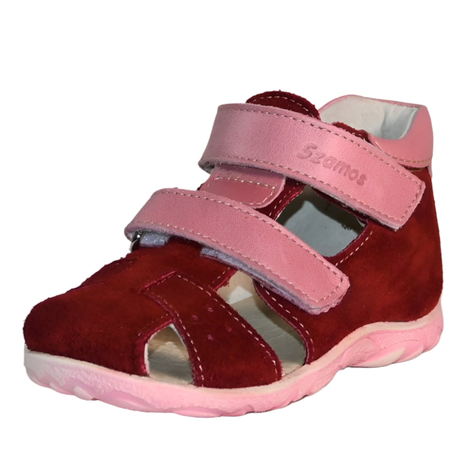 Szamos girls’ sandals in a charming burgundy color combination, crafted from genuine leather. Featuring a secure toe strap and a soft, flexible sole, they ensure all-day comfort and natural movement. Ideal for both outdoor use and indoor wear, making them perfect for nursery or kindergarten.