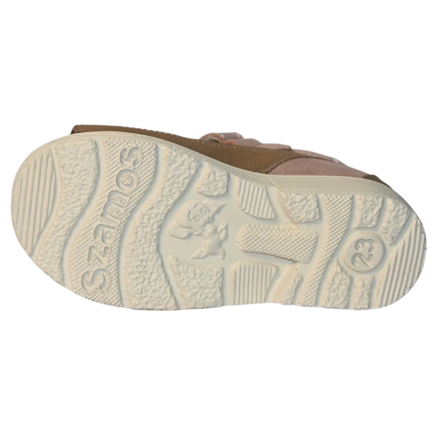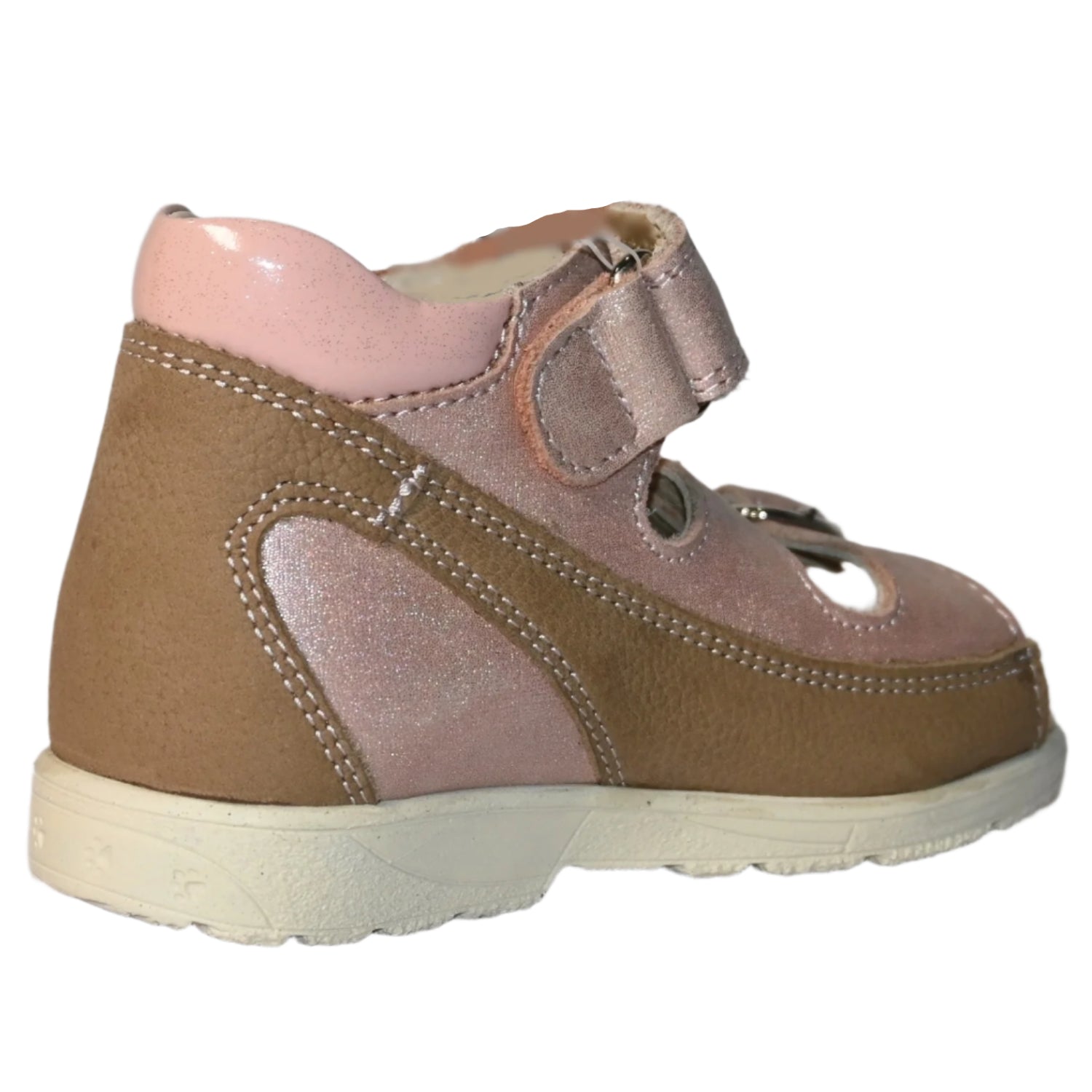 Szamos Kids Girls’ Genuine Leather Orthopedic Corrective Sandals – Arch Support Shoes for Flat Feet & Overpronation with Adjustable Hook-and-Loop Straps, Pink Metallic Floral