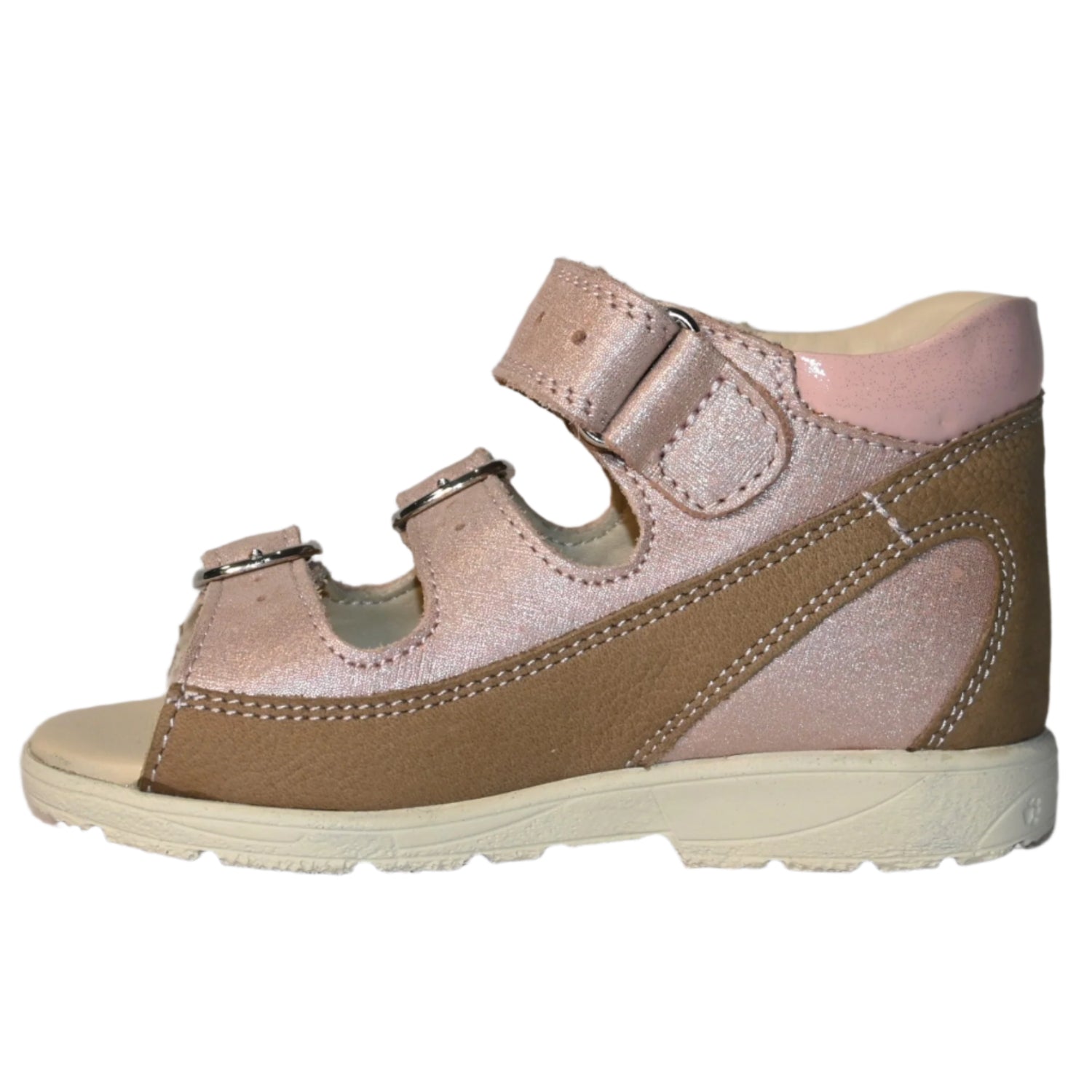 These sandals feature a corrective orthopedic sole with supinated support, guiding the foot into proper position — ideal for children with flat feet or inward-leaning ankles. The reinforced heel structure helps maintain correct heel axis, stabilizes the ankle, and encourages natural arch development by engaging the right muscles.