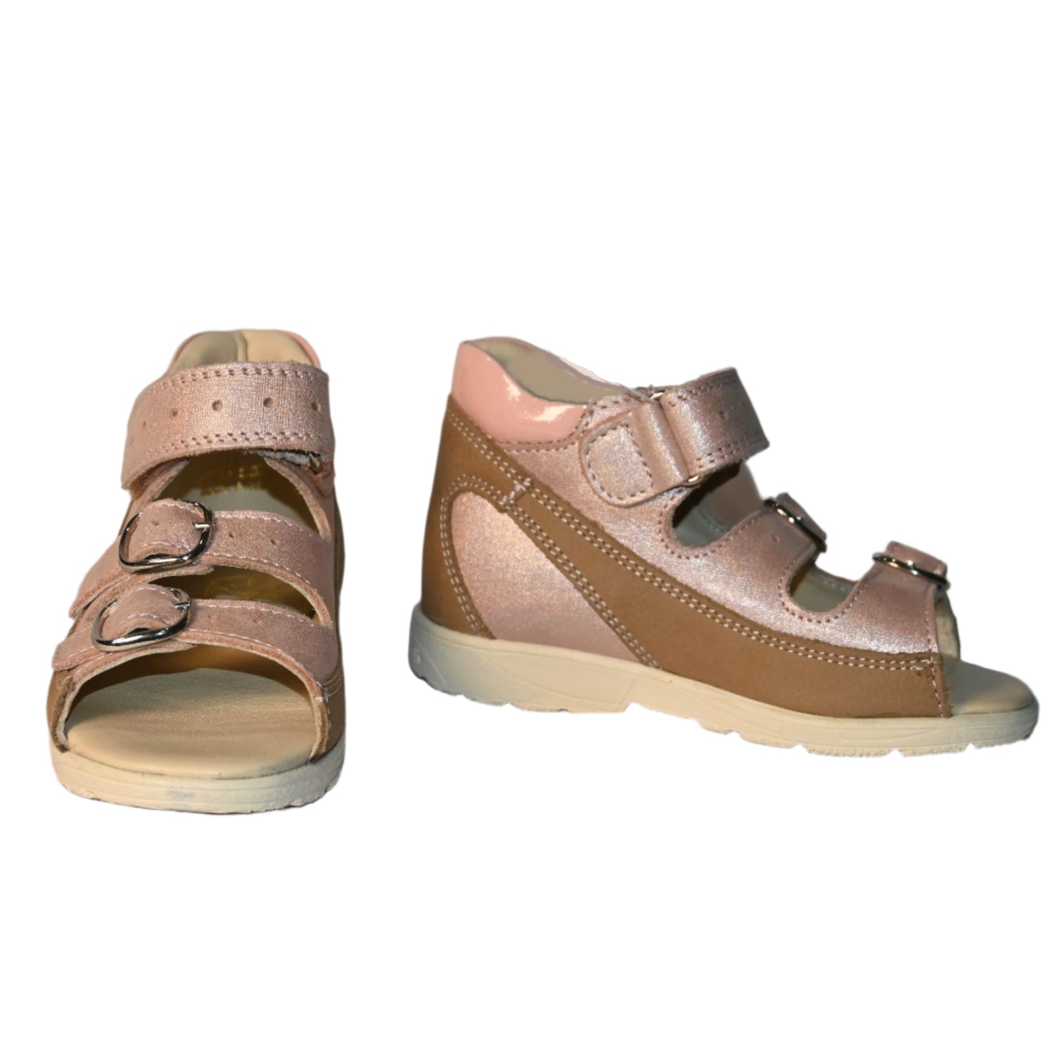 Support your child’s healthy foot development with these Szamos orthopedic sandals, expertly handcrafted in Hungary for breathable comfort, durability, and style. Made from 100% genuine cow nubuck leather inside and out, they provide long-lasting quality while keeping little feet cool and comfortable throughout the day. The corrective orthopedic sole is specially designed for children with flat feet, over-pronation, or ankles that roll inward. It features a 4.5 mm built-in heel lift that gently tilts the heel outward to promote proper alignment, encourage natural arch formation, stabilize the ankle, arch support, and improve posture and balance. This proven type of support — widely known in Europe as “supinated” footwear — delivers real orthopedic benefits while remaining comfortable for everyday wear. A reinforced heel counter ensures ankle stability and maintains the correct heel axis, while the open forefoot design allows natural movement. The sturdy toe protection adds durability during active play, and the flexible rubber sole supports a natural walking motion with reliable traction on different surfaces. With three adjustable straps — one hook-and-loop fastener and two buckles — children enjoy a secure, customizable fit that makes the sandals easy to wear from morning to evening. Perfect for school, playtime, or family outings, these Szamos sandals balance European craftsmanship with supportive design. They provide peace of mind for parents and everyday comfort for kids — more than just shoes, they are a thoughtful investment in healthy growth and lasting quality.